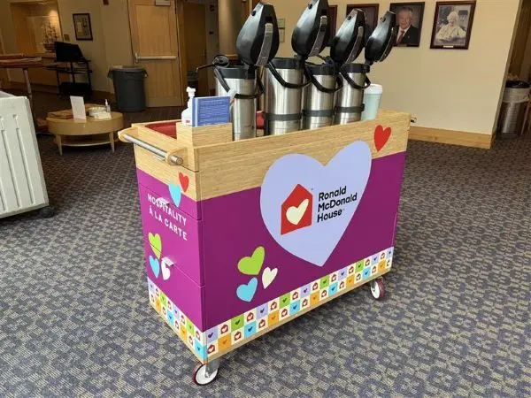 Our Hospitality à la Carte program brings comfort directly to hospital hallways. Through our signature carts stocked with snacks, essentials, and care items, we offer families small moments of relief at their child’s bedside—proof that even simple acts of hospitality can make a big difference.